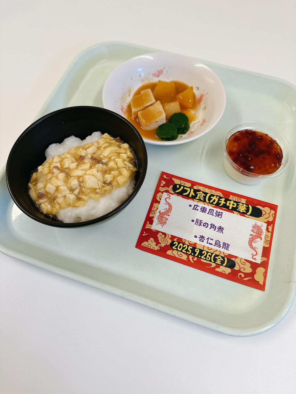 ・広東風粥はお粥の上に卵、しいたけ、ガラスープであんを作り、かけてあります🐼