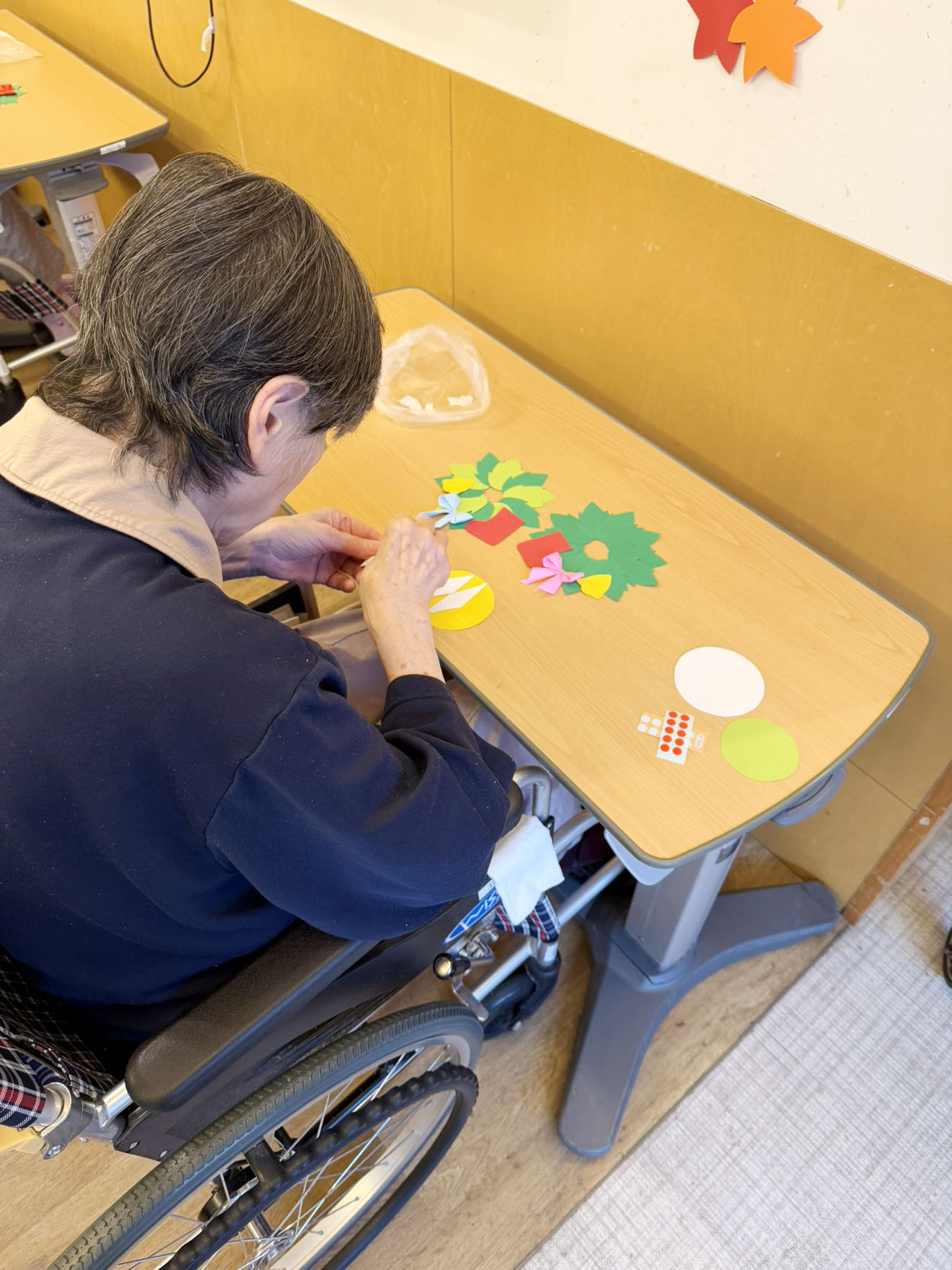 工作コーナーでは、クリスマスリーフ作りに挑戦していました。